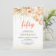 Élégante et élégante invitation à l'anniversaire floral présente une étonnante aquarelle jaune orangé fleur avec une végétation feuillue beige et une longue parties scintillant d'or pluie garland. Vous pouvez facilement customiser les détails de la fête, y compris l'âge pour le rendre encore plus personnalisé. Partagez la joie avec vos amis et votre famille et faites de ce jalon anniversaire un souvenir!