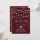 Chaîne rustique éclaire Bourgogne Baby shower Brunch Invitation | baby shower rustique et fantaisiste invitation brunch mettant en vedette la lumière à cordes blanches sur un arrière - plan d'aquarelle bordeaux. Cette invitation de brunch baby shower entièrement personnalisable est parfaite pour des baby showers rustiques, automnaux et chic et froids.