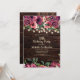 Invitation à la fête du 18e anniversaire avec un arrière - plan rustique en bois brun foncé et des lampes à cordes scintillantes avec aquarelle rose et violet floral. Contactez-nous pour obtenir de l'aide sur la personnalisation ou la mise en correspondance de produits.