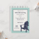 Ces invitations personnalisées sont parfaites pour les fêtes de retraite, les fêtes d'anniversaire et plus encore. Elles présentent une illustration d'une chaise Adirondack en bois en bleu marine sur un fond bleu aqua clair et blanc coquille d'œuf. Les invitations à panneau plat sont prêtes à être personnalisées avec tous les détails de votre fête en lettrage bleu marine. Le verso présente un motif de rayures coordonnant.
