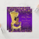 Invitation à une baby shower violet et or avec une adorable petite fille afro-américaine portant un joli tutu violet, un collier de perles et une couronne dorée, assise sur une belle chaise dorée sur un fond violet et or avec des confettis pailletés. Cette belle invitation à une baby shower violet et or est facilement personnalisable pour votre événement en ajoutant simplement vos détails dans le style de police, la couleur et le libellé de votre choix. Il s'agit d'une conception imprimée sans véritables paillettes, confettis, bijoux, etc.