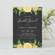 Invités Invitations à votre événement avec cette invitation de brunch à thème agrumes rustique. Il présente des illustrations aquarelle de citrons, de clémentines, de fleurs florales et de guirlande verdoyante avec un arrière - plan en faux tableau. Cette invitation au citron sera parfaite pour les brunchs à thème agrumes et les brunchs d'été.