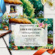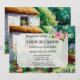 Une invitation artistique pour une fête d'été représentant une peinture d'un chalet avec jardin. Parfait pour une célébration de jardin ou de cour arrière pour un anniversaire, une nouvelle maison ou juste comme ça.