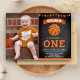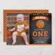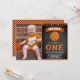 Éblouissez vos invités avec cet invitation de fête d'anniversaire cool avec un basket-ball avec une typographie vibrante contre un arrière - plan de tableau noir. Ajoutez simplement les détails de votre événement sur ce modèle facile à utiliser et ornez cette carte avec la photo préférée de votre enfant pour en faire une invitation unique. Retournez la carte pour révéler un motif rayé orange et noir au dos de la carte.