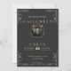 Cette invitation à la fête d'Halloween est un étonnant mélange d'élégance et de fantaisie, avec un design captivant sur fond de noir profond. L'avant est agrémenté d'élégantes bordures d'angle doré et d'écriture, ajoutant une touche de sophistication au design. Au centre, un citrouille noir frappant prend le devant de la scène, entouré de motifs de défilement roses complexes et de feuilles orange éparpillés. Ce motif enchanteur capte l'essence d'Halloween, promettant une nuit de fête et d'excitation. La palette de couleurs noir, or, rose et orange crée un look vibrant et captivant, parfait pour une fête d'Halloween. Le citrouille noir, symbole classique d'Halloween, ajoute une touche de fantaisie à l'invitation, tandis que les motifs de défilement roses et les feuilles oranges ajoutent une touche d'élégance et de fantaisie. Ensemble, ces éléments créent un design à la fois élégant et festif, ouvrant la voie à une inoubliable fête d'Halloween. L'arrière de l'invitation poursuit le thème avec son arrière - plan noir élégant, assurant un look cohésif et élégant. Que vous soyez l'hôte d'un bal costumé sophistiqué ou d'une soirée de sculpture de citrouille fantaisiste, cette invitation vous donnera le ton parfait pour votre fête d'Halloween. Invitation vos invités à se joindre à vous pour une nuit de plaisir et de festivités avec cette magnifique invitation de fête d'Halloween.