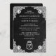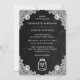 Ce faire-part de mariage rustique noir avec un bocal de mason et dentelle fleurie blanche sur un arrière - plan en damier noir est parfait pour inviter vos invités à votre fête de mariage rustique, de jardin ou de grange inspirée du tableau noir.