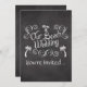 Utilisez cette carte pour le mariage, le dîner de répétition, le après-soirée ou tout événement lié au mariage sur la plage. Arrière - plan de tableau noir tendance et populaire en gris fusain avec texte blanc écrit à la main. Un peu comme un vieux centre commercial ou un attrait vintage. Ramenez le style vintage avec une planche à écrire en ardoise poussiéreuse. Le rivage est un endroit parfait pour célébrer les noces du grand jour de mariage avec ce thème, utiliser ce gardien comme une faveur ou memento chéri pour les temps à venir. Copyright de conception © CustomInvitesOnline.com