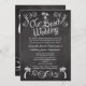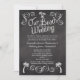 Célébrez les nuptiaux sur le rivage avec ce palmier aéré avec un sketché sur tableau noir de tableau noir avec un aspect craie blanche. Idéal pour un vintage rustique lors d'un mariage à la plage. Copyright de conception © CustomInvitesOnline.com