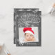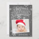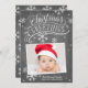 Cette carte de vacances photo présente des oeuvres d'art en lettres et calligraphie sur un arrière - plan de tableau noir branché avec des flocons de neige.