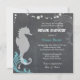 Grande silhouette d'hippocampe, vagues de l'océan et bulles avec des textures de faux tableau de bord dessinées sur les Invitations de douche nuptiale personnalisées. Invitations chic et amusants pour votre wedding shower d'été ou de plage ! (Vous pouvez trouver les essentiels et les faveurs mariages correspondants dans ce magasin, le paradis nuptial. Contactez ujean4791@gmail.com pour un travail personnalisé et/ou la coordination de la papeterie mariage.))