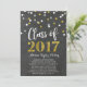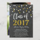 Invitation de la fête de graduation classe de carte photo personnalisée de 2017 en argent, blanc et or confetti motif avec arrière - plan de tableau rustique et texte de style lettré à la main.