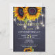 Floral élégant sweet sixteen d'automne / 16ème anniversaire modèle sur sombres minuit tableau bleu marine avec bouquets de tournesols jaunes dorés et cordes de lumières scintillantes. Remplissez vos informations dans les zones, Vous pouvez choisir de le customiser en changeant encore les polices et les couleurs du lettrage. — L'invitation convient pour la fin de l'été | automne jardin extérieur soirée / jardin / fête d'anniversaire chic floral. — Si vous avez besoin d'aide, s'il vous plaît contactez-moi!