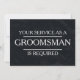 Ce 5" x 7" beau temps à votre service est demandé comme la meilleure carte d'invitation de l'homme Groomsman. C'est mieux pour le marié. Si vous cherchez à demander à quelqu'un d'être votre toiletteur pour votre futur mariage, alors pourquoi ne pas choisir ces cartes de toiletteur. Cette carte d'invitation customisée fera de votre ami, frère, cousin, neveu, fils ou qui que ce soit d'autre que vous choisissez sentir cet extra spécial. Cette invitation est facilement personnalisée en cliquant sur le bouton customiser sous l'image où vous pourrez changer le texte, la police et la taille. Vous pouvez invitation vos meilleurs copains avec style avec ces invitations classe. Il convient au Best Man ou aux Groomsmen. Envoyez-leur cette carte de groomsmen.