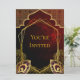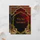 Ce design d'invitation époustouflant capture l'essence du luxe et de l'élégance avec un fond rouge rubis et des accents dorés complexes. Les plumes de paon dorées complexes et les arches inspirées de l'Orient ajoutent une touche de beauté exotique au design. Parfait pour un mariage ou un événement spécial, cette invitation symbolise la bonne fortune et l'amour éternel. Faites une déclaration avec cette invitation exquise qui impressionnera sûrement vos invités et donnera le ton pour une célébration vraiment inoubliable.