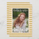 Faire-part de diplôme pour un lycéen ou un étudiant d'université avec une photo de votre diplômé dans un champ de fleurs, ou tout décor, sur une parties scintillant dorée rayé arrière - plan. Modifiez le texte personnalisé à l'envers pour un message, les plans futurs de la grad et une invitation à rejoindre la parade de voiture de graduation dans le quartier, ou tout type de fête de graduation.