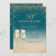 Invitation Champagne Pailleté Or Sarcelle 50e Anniversaire