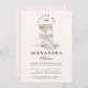Celebrate her milestone in true coquette style with this elegant pearl-and-champagne graduation design. A soft blush backdrop, delicate bow details, and a shimmering coupe glass create a refined, feminine look that feels both celebratory and timeless. Personalize the text to feature your graduate’s name, event details, and reception information. A perfect choice for a sophisticated graduation gathering with a touch of vintage charm.