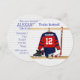 Nous pouvons faire ce produit dans n'importe quelle combinaison de couleurs de jersey contactez-nous par l'intermédiaire du magasin giftsbonanza avant d'acheter. Jersey de hockey sur glace bleu et rouge accroché dans un vestiaire avec bâton de hockey, casque et patins de hockey entièrement personnalisable avec votre nom et votre numéro. Au verso, changez simplement les détails de votre propre fête pour créer des invitations uniques à la fête d'anniversaire de hockey sur glace. Parfait pour tous les âges !