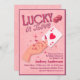 Célébrez l'amour, la chance et les fins heureuses avec cette charmante invitation de fête prénuptiale « Lucky in Love ». Dotée d'une palette rose doux, d'éléments ludiques inspirés des casinos et d'une typographie élégante, cette conception est parfaite pour un thème de fête prénuptiale amusant et classe. La main illustrée tenant une carte reine de cœur ajoute une touche romantique et élégante qui lie magnifiquement le thème.