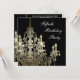 Carton d'invitation élégant anniversaire 50 ans femme noir et or à chandelier doré.