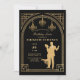 Un bon plaisir rugissant vous attend avec cette élégante invitation à la fête d'anniversaire avec un thème des années 20, avec un cadre d'arche déco et la silhouette d'une élégante femme dansant avec son partenaire. Un modèle parfait Gatsby invitation à la fête pour un thème Great Gatsby. Que ce soit pour un 40ème, 50ème, 60ème, 70ème ou 80ème anniversaire, ou pour une vingtaine d'années folles, ce vintage cadre Art déco nouveau avec un effet de superposition de feuille d'or (c'est un effet numérique, pas un vrai papier d'aluminium !) brillera. Une soirée à thème dans les années 2000 pour une poupée de tout âge. Convient également pour un gala d'affaires ou d'entreprise.