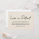 Due to the current situation, it is understandable that some wedding will have to be put on hold. Using the words "Love is Patient" for a positive way to deliver the message of your wedding postponement, customize this "Change of plans" card to keep your guests and family informed. Digital download available. Beige cream colored background.