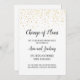 Cette élégante annonce de report de mariage à calligraphie avec confettis dorés est parfaite pour informer les invités du report du mariage ou d'un autre événement. Le design chic présente de faux confettis dorés sur fond blanc, avec une calligraphie sombre élégante. Personnalisez l'annonce avec le type d'événement, les noms des mariés et la nouvelle date.