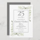Avec une délicate verdure de jardin champêtre à l'aquarelle, cette invitation d'anniversaire chic pour changer la date peut être personnalisée avec vos informations de célébration d'anniversaire de 25 ans, avec un fond argenté au verso. Conçu par Thisisnotme©