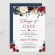 Invitation Changer la date Chic Bourgogne Fleurs Bleu Marine