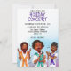 Un trio féminin afro-américain habillé de blanc avec des ceintures de couleur individuelle chante des louanges pour les vacances, faisant un bruit joyeux avec les mains, la voix et l'instrumentation.