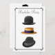 Cette invitation élégante donnera le ton et indiquera qu'il s'agit d'une soirée élégante en ville, au lieu d'une soirée décontractée. Très masculin, très stylé. Caractéristiques : un élégant chapeau melon noir, un fedora trilby noir avec un bandeau gris et un chapeau de paille avec un bandeau noir avec une bordure noire art déco simple. Au dos de l'invitation se trouve un autre chapeau fedora avec un bandeau blanc. Il suffit de remplir les espaces avec les informations de votre soirée et d'apporter les modifications nécessaires. -- Voir les remises pour les achats en gros. Enveloppes incluses.