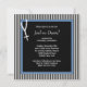 Invitation pour garçon avec chapelet à rayures bleu, noir et blanc pour la première communion