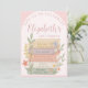 Fêtez votre amoureux du livre avec cette invitation de charme! Doté d'une palette pastel douce, de livres empilés fantaisistes et de fleurs délicates, ce design est parfait pour les amateurs de livres fête d'anniversaire surélevée.