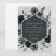 This design features a sophisticated arrangement of charcoal-hued blooms and foliage. The moody floral elements evoke a sense of timeless romance and refined style. A captivating monochromatic palette creates a dramatic yet graceful aesthetic for your special day.