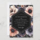 This dramatic design sets a sophisticated tone for your nuptials. Luminous painterly anemones in soft blush and pale apricot emerge from a deep charcoal background. Subtle accents of slate blue botanicals add depth to the moody floral arrangement, perfect for a modern, artful union with a touch of dark romance.