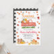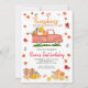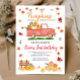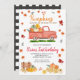 Chariot rouge Chantier d'anniversaire Hay, Feuille, Citrouille, invitation Peut être utilisé pour l'anniversaire de toute invitation d'âge.