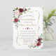 Elégant design de carte avec aquarelle délicate rose bordeaux et feuilles verts, cadre faux or, cloison florale, sur un arrière - plan blanc. Sur le dos bouquet de fleurs rousses. Utilisez l'outil Personnaliser pour ajouter vos informations, modifier les polices, les couleurs de la police. Pour les articles correspondants, veuillez visiter ma collection de fleurs bleues bordeaux.
