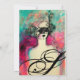 Élégante dame fantaisiste avec un masque vénitien sophistiqué à plumes dans des couleurs vives rose, vert, fuchsia, noir et blanc, inspiré de la Comédie de l'Art (Commedia dell'Arte) et du Carnaval de Venise, peinture à l'aquarelle avec feuille d'or et d'argent. Facile à personnaliser avec votre propre texte pour un mariage, une annonce, une réponse, un remerciement, une fête de fiançailles, des fêtes d'anniversaire, des fêtes de fiançailles romantiques, une soirée masquée du Nouvel An, des remises de diplômes, des anniversaires, des réunions ou presque n'importe quel événement que vous souhaitez !