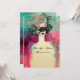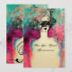 Femme élégante et fantaisiste avec un masque vénitien sophistiqué à plumes de couleurs vives rose, vert, fuchsia, noir et blanc, inspiré de la Comédie de l'Art (Commedia dell'Arte) et du Carnaval de Venise, peinture à l'aquarelle avec feuille d'or et d'argent. Facile à personnaliser avec votre propre texte pour un mariage, une annonce, une réponse, un remerciement, une fête de mariage, des fêtes d'anniversaire, des fêtes de fiançailles romantiques, une soirée masquée du Nouvel An, des remises de diplômes, des anniversaires de mariage, des réunions ou presque tout événement que vous souhaitez !