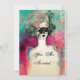 Femme élégante et fantaisiste avec un masque vénitien sophistiqué à plumes dans des couleurs vives rose, vert, fuchsia, noir et blanc, inspiré de la Comédie de l'Art (Commedia dell'Arte) et du Carnaval de Venise, peinture à l'aquarelle avec feuille d'or et d'argent. Facile à personnaliser avec votre propre texte pour un mariage, une annonce, une réponse, un remerciement, une fête de mariage, des fêtes d'anniversaire, des fêtes de fiançailles romantiques, une soirée masquée du Nouvel An, des remises de diplômes, des anniversaires de mariage, des réunions ou presque n'importe quel événement que vous souhaitez !
