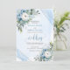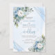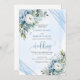Invitation Charmant Dusty Bleu Blanc Fleurs d'argent Mariage