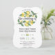 Carte Watercolor Lemon Branch design unique avec branche de citron aquarelle avec fleurs, feuilles et fruits, typographie moderne. Utilisez l'outil Personnaliser pour ajouter vos informations, modifier les polices, les couleurs. Pour les articles correspondants, veuillez visiter ma Collection de citron aquarelle.