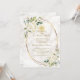 Elégant design de carte avec aquarelle délicate fleurs blanches et feuilles verts, cadre ovale faux or, une fausse croix d'or, chalice, sur un arrière - plan en marbre. Sur le dos bouquet de fleurs blanches sur le même marbre. Utilisez l'outil Personnaliser pour ajouter vos informations, modifier les polices, les couleurs de la police. Pour les objets correspondants, veuillez visiter ma collection de la Sainte Communion.