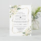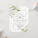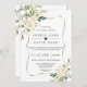 TOUTE EN UNE invitation. En incluant les détails et le RSVP (facultatif) à l'arrière du faire-part de mariage au lieu de sur une carte de boîtier séparée, vous pouvez enregistrer du papier. Elégant design de carte avec des fleurs d'aquarelle blanche délicate, le feuillage d'eucalyptus, cadre en faux or, le tout sur un arrière - plan blanc. Utilisez l'outil Personnaliser pour ajouter vos informations. Pour les articles correspondants, veuillez visiter ma collection de fleurs blanches .