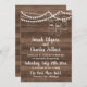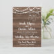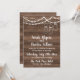 Un faire-part de mariage parfaitement rustique, avec des cordes de lumières, des jarres de maçon et un arrière - plan en bois.