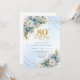 Invitation Charming 80th Birthday Invite Dusty Blue Flowers