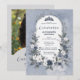 Charming Floral Blue Oval Frame Quinceañera Invitation Card Design with Tiara and Back Photo.