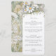 Ajoutez une touche de charme à votre réception de mariage avec cette délicieuse carte Mariage Daisy. Dotée d'une délicate palette de couleurs pastel, cette carte de menu vertical est ornée de marguerites blanches superbement illustrées et d'un feuillage vert tendre, créant une atmosphère sereine et romantique. L'oeuvre florale complexe est complétée par un mélange apaisant de tons vert clair, crème et jaune doux, ce qui en fait un choix parfait pour les mariages avec un thème d'inspiration nature ou vintage. L'avant de la carte présente les noms du couple en écriture élégante, tandis que l'arrière présente les détails du menu dans une disposition qui s'harmonise avec le design floral. Cette carte est idéale pour ceux qui souhaitent imprégner leur décoration mariage d'une esthétique douce et accueillante.