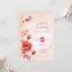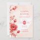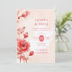 Charming Delicate Flowers Juicy Red & Pinky Pink Editorial Wedding Invitation with Back QR Code.