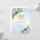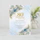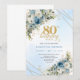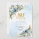 Invitation Charming Dusty Blue Floral Gold 80th Birthday Card